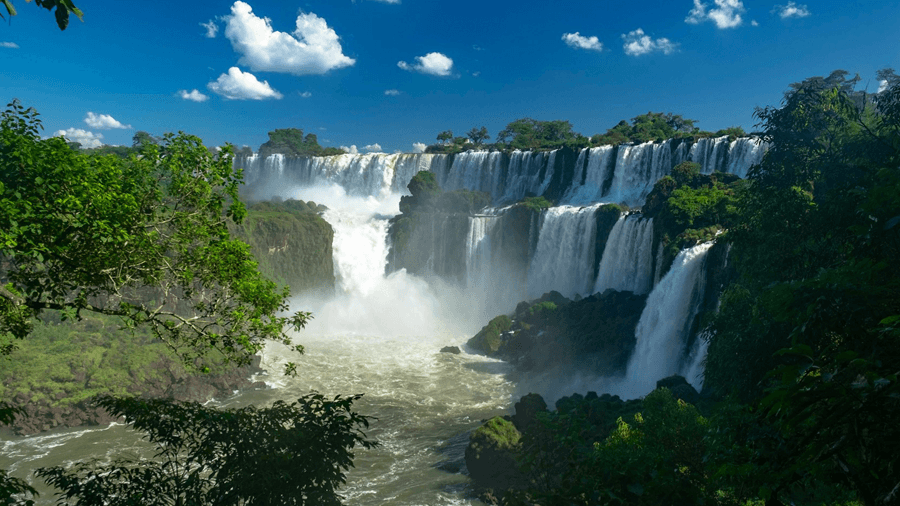 Om du är en naturälskare, kommer Iguazúfallen att slå dig med häpnad. Denna imponerande vattenfallsgrupp sträcker sig över Brasilien och Argentina och är ett verkligt naturunder.