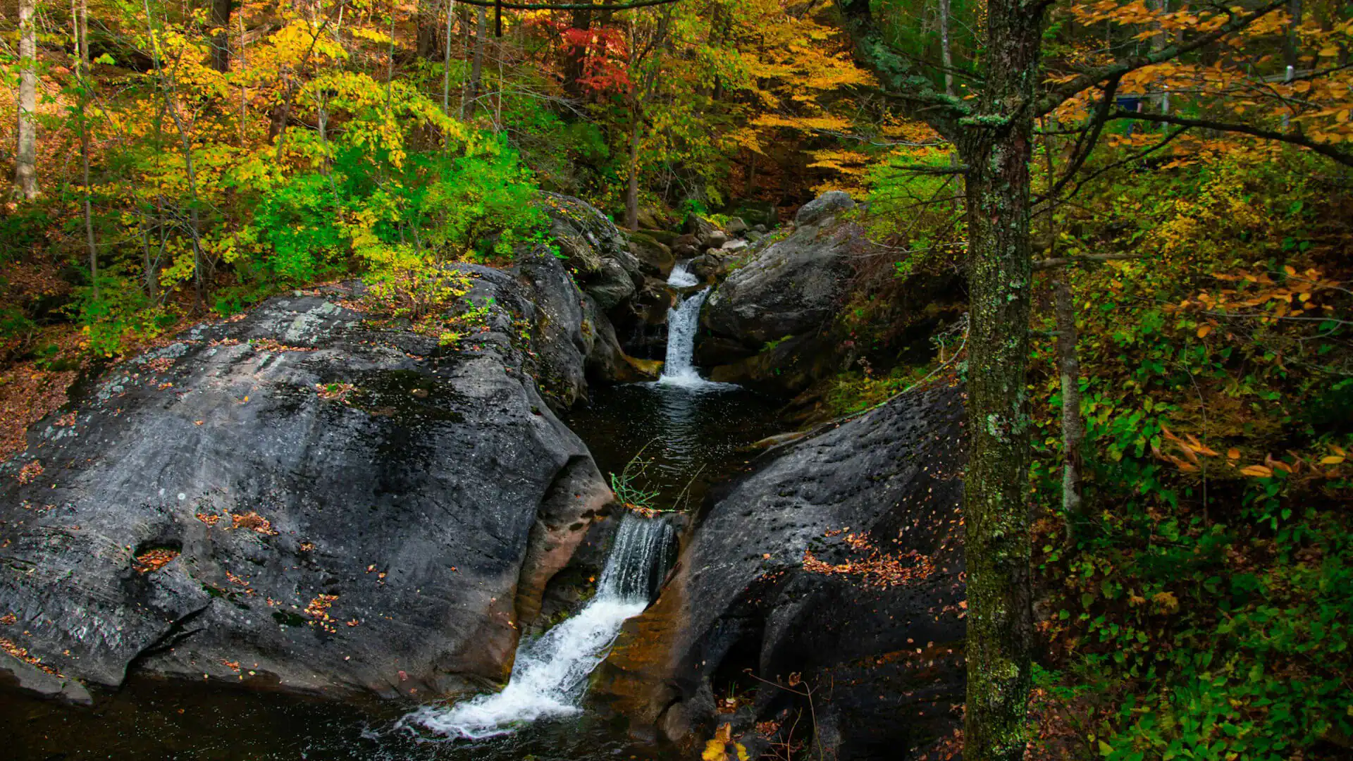 Inåt landet förändras landskapet. Connecticut River, som slingrar sig från norr till söder, är statens livsnerv och kantas av pittoreska byar och skogar som exploderar i färg under hösten. Det är just under höstperioden, “fall foliage”, som Connecticut är som mest spektakulärt. Trädens löv skiftar i eldröda och gyllene nyanser, och vägarna fylls av fotografer och resenärer som vill uppleva den ikoniska New England-hösten. Områden som Litchfield Hills och The Quiet Corner i nordöstra Connecticut erbjuder några av de vackraste vyerna.