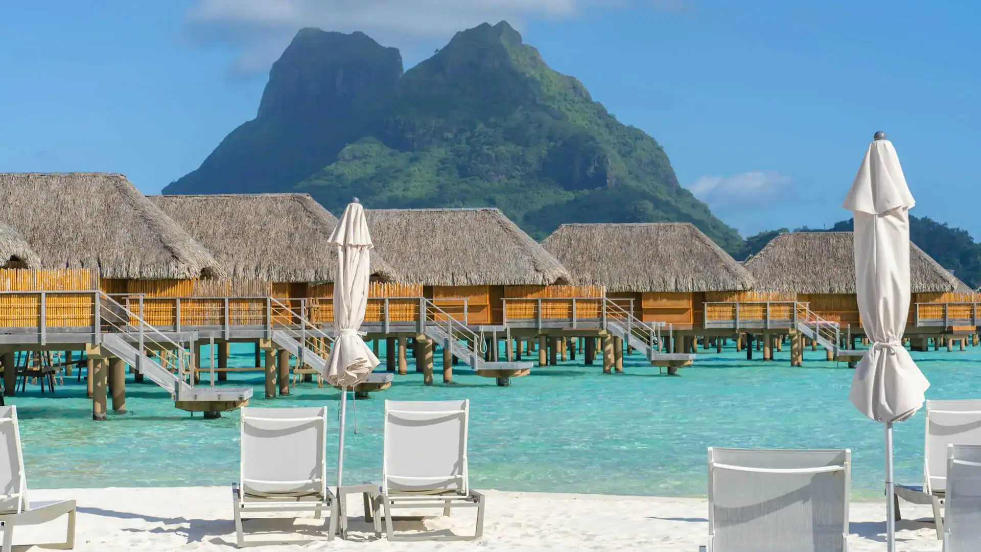 Här hittar man några av världens mest exklusiva resorter, många med övervattensbungalows där man kan kliva direkt ner i havet från sin privata terrass. Upplevelsen av att vakna upp till ljudet av vågor och se soluppgången över de mäktiga bergen är svårslagen. Trots sin exklusivitet går det även att uppleva Bora Bora på enklare vis, till exempel genom små familjeägda pensionat på huvudön.