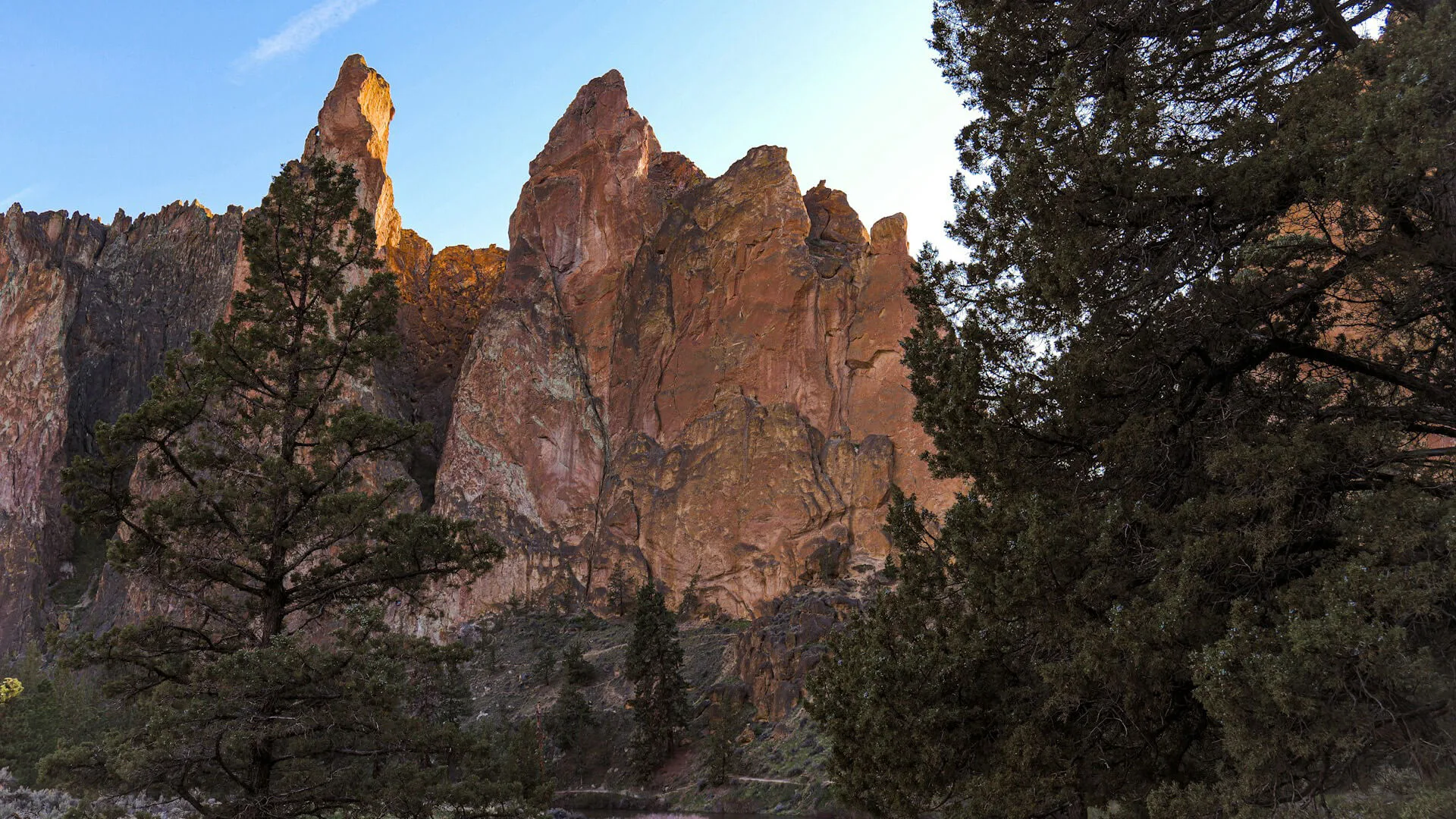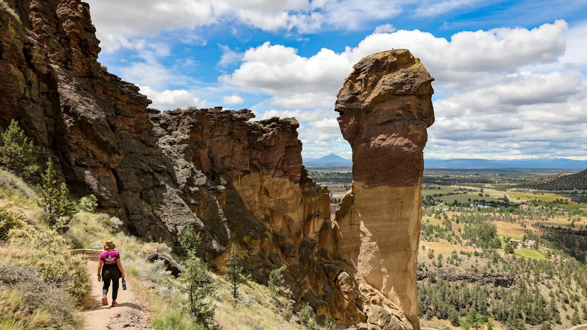 I inlandet finns flera spektakulära platser såsom Smith Rock State Park, där dramatiska klippor av basalt och tuff reser sig i dalar och erbjuder imponerande klättringar och utsiktsvandringar. Parken betraktas ofta som en födelseplats för sportklättring i USA. Där finns flertal vandringsleder som tar dig upp till utsiktspunkter med imponerande vyer mot Crooked River och den omgivande öknen.