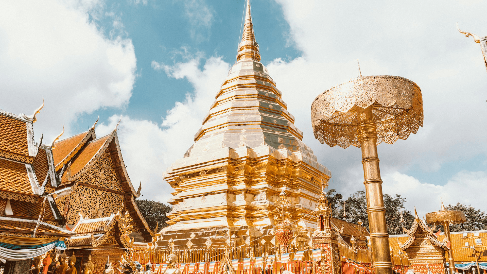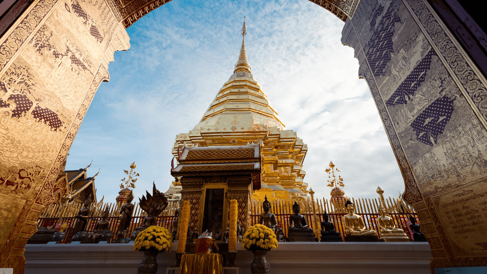 Wat Phra That Doi Suthep är utan tvekan det mest ikoniska templet i Chiang Mai. Templet ligger på berget Doi Suthep cirka 15 kilometer från stadens centrum. Härifrån får besökare en spektakulär utsikt över hela Chiang Mai-dalen. Templet anses vara ett av de heligaste i norra Thailand och lockar både pilgrimer och turister.