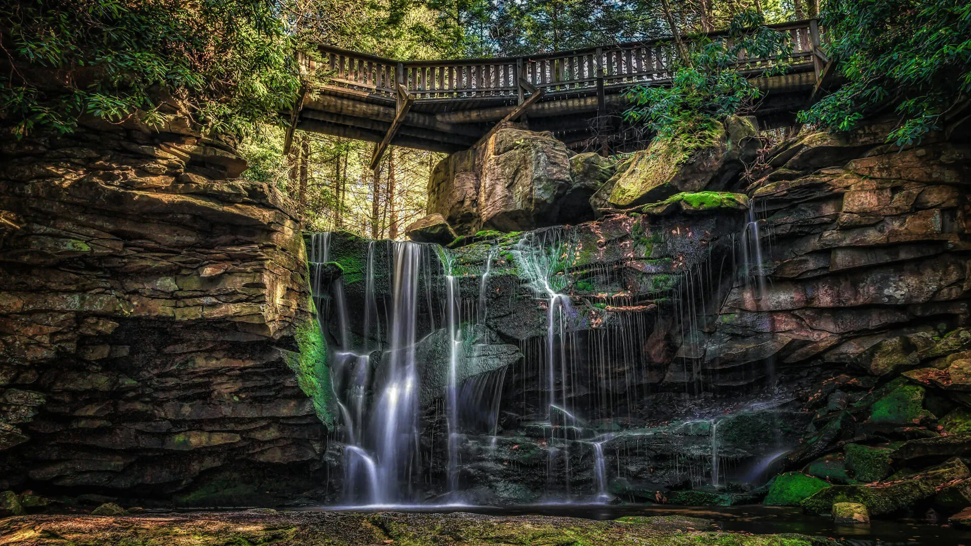 West Virginia ligger i hjärtat av den amerikanska östra bergskedjan Appalachian Mountains och utmärker sig genom att vara den enda amerikanska delstaten som nästan helt vilar inom ett bergsområde. Här hittar du djupa klippor och raviner, vida skogar, böljande bergslandskap och ett flodsystem som skär genom landet med imponerande kraft. Ett exempel är New River Gorge i södra delen av staten, som med sitt dramatiska landskap skapar minnesvärda upplevelser. Staten är också mycket skogstäckt, vilket innebär att färgsprakande höstar, vårens vilda blommor och vinterns stillhet alla har sin plats. Naturen är inte bara bakgrund, den är resmålet.