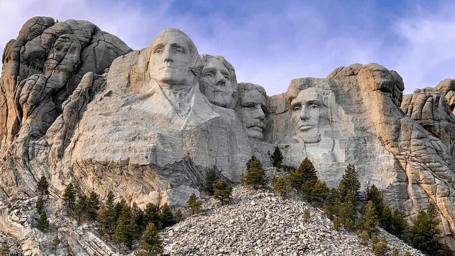 Mount Rushmore föreställer fyra amerikanska presidenter: George Washington, Thomas Jefferson, Theodore Roosevelt och Abraham Lincoln.