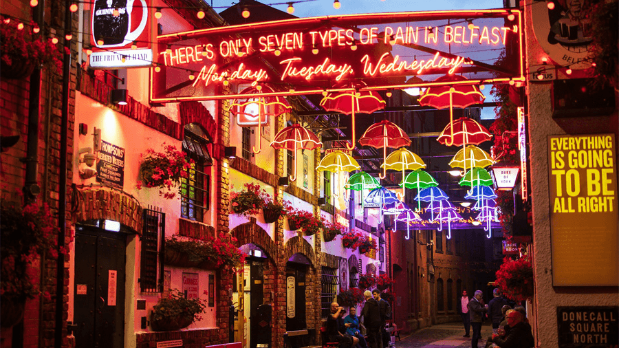 Belfast är ofta startpunkten för en resa till Nordirland, och det är en stad som verkligen förtjänar att utforskas. Under de senaste decennierna har Belfast gått från att vara präglad av konflikt till att bli en modern och livfull stad med ett rikt kulturutbud.