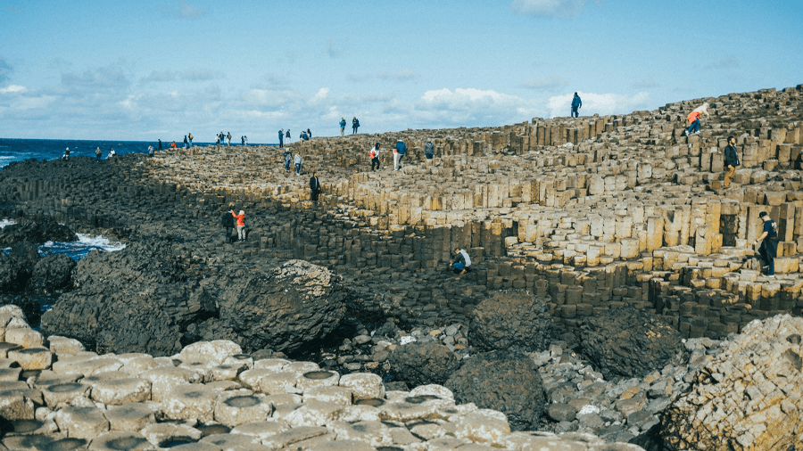 Ett av Nordirlands mest kända landmärken är Giants Causeway, ett världsarv på Nordatlantens kant. Här möts vetenskap och mytologi. Den geologiska förklaringen är att de cirka 40 000 sexkantiga basaltpelarna skapades av vulkanisk aktivitet för över 60 miljoner år sedan. Men enligt legenden byggdes de av jätten Finn McCool, som ville ta sig över till Skottland.