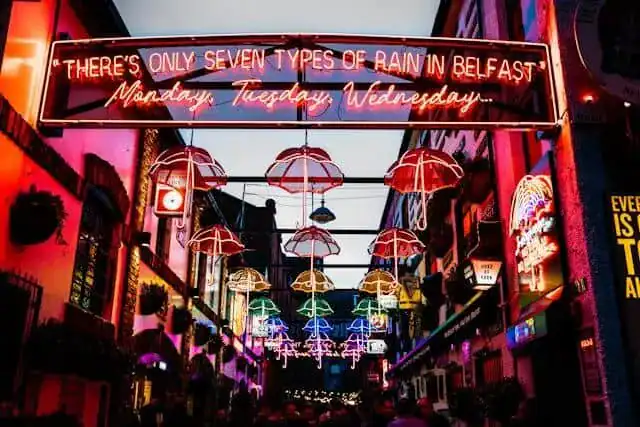 Kulturarvet i Nordirland är också starkt närvarande i musik, litteratur och traditioner. Det finns en levande scen för både traditionell och modern musik, och du kommer ofta att stöta på livemusik i pubar och på evenemang runt om i regionen.