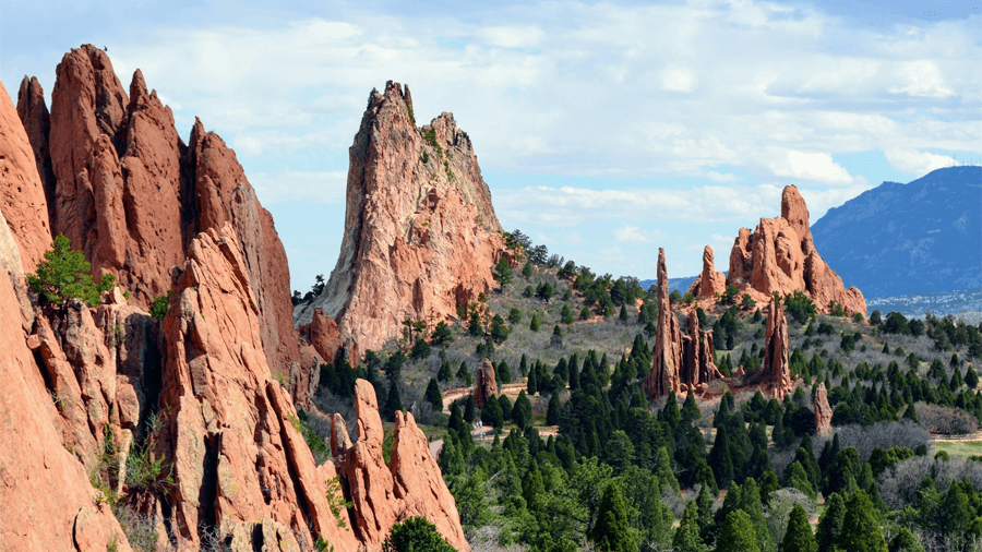 Garden of the gods är en naturskön park känd för sina imponerande röda klippformationer. På Garden of the gods kan du vandra, cykla eller bara njuta av den vackra utsikten. Det finns även möjlighet till klättring, gå på teater, handla souvenirer och att rida.