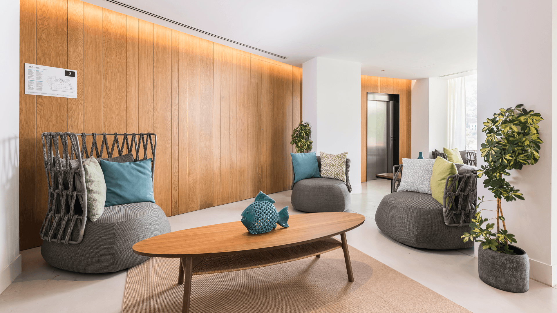 Resortens design är modern, stilren och inspirerad av omgivningarna. Färgskalan går i lugna, naturliga toner som speglar havet och bergen, och materialen är noggrant utvalda för att skapa en känsla av kvalitet och harmoni. Här finns en tydlig röd tråd i allt från lobby till rum, vilket bidrar till en genomtänkt helhetsupplevelse.